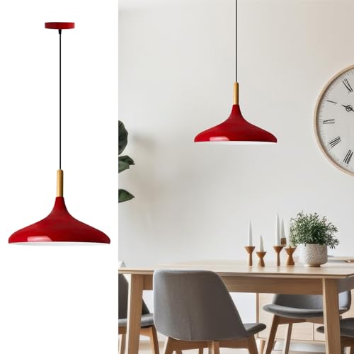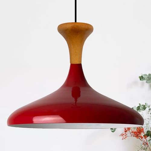 bamyum Champion Lampe à Bois Suspension Moderne en Metal de 35 cm, Lustre de Salon, Chambre, Cuisine, Suspension Luminaire Plafonnier, Éclairage de Plafond, Lampe Suspendue Rouge
