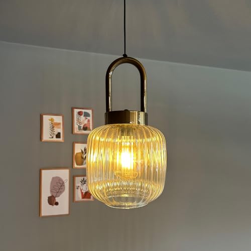 bamyum Mopa Suspension Luminaire Verre Rétro en Metal de 20 cm, Lustre de Salon Vintage, Éclairage de Plafond pour Chambre, Cuisine, Suspension Luminaire Verre, Lampe Suspendue Verre