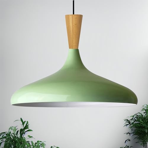bamyum Champion Lampe à Bois Suspension Moderne en Metal de 35 cm, Lustre de Salon, Chambre, Cuisine, Suspension Luminaire Plafonnier, Éclairage de Plafond, Lampe Suspendue Menthe Verth