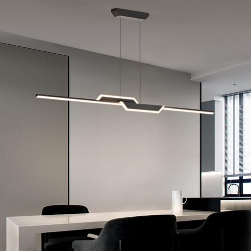 Suspension Luminaire Cuisine Moderne, 3000K/4000K/6000K 10%–100% Température de Couleur Lustre Linéaire, Dimmbar avec Télécommande Chandelier pour Cuisine,Salon,Salle à manger,Chambre à Coucher 120CM