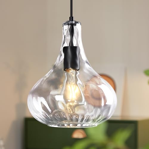 ZYBWL Suspension luminaire verre transparent, lustre métal noir, suspensions d'éclairage intérieur moderne, suspension luminaire cuisine, chambre, salon, Ø 24 cm