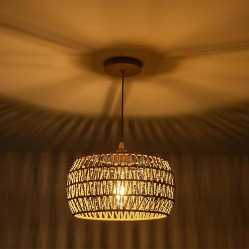 PANNN E27 Lustre En Rotin Moderne Bambou Rotin Suspension Ferme Tissé Osier Abat-jour Boho Luminaires Vintage Suspension Luminaire Cuisine Lustre Fait Main Pour Chambre Salon Couloir Cuisine(B)
