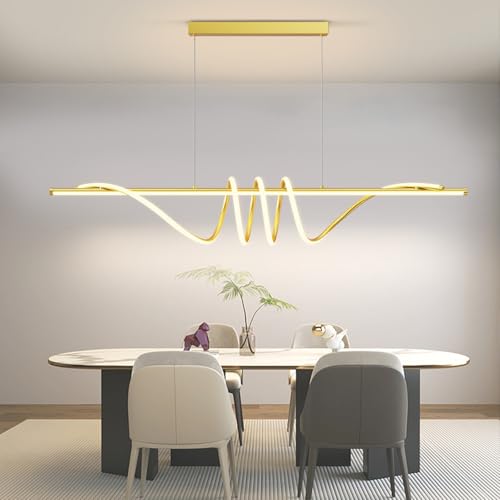 Suspension Luminaire Cuisine LED Moderne, 3000K/4000K/6000K 10%–100% Température de Couleur Lustre, Dimmbar avec Télécommande Chandelier pour Cuisine, Salon, Salle à manger,Chambre à Coucher -Or 150CM