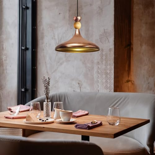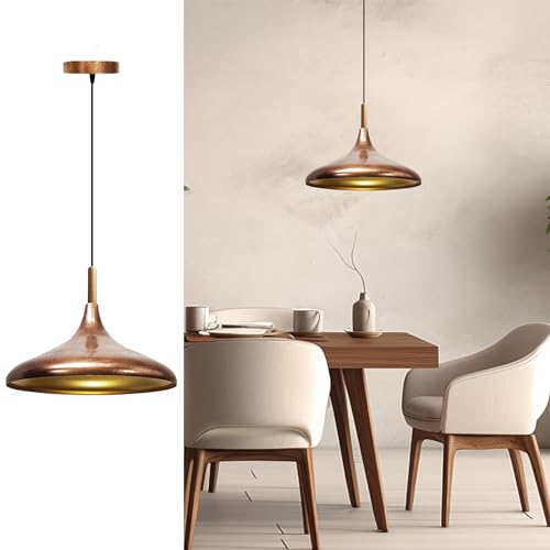 bamyum Champion Lampe à Bois Suspension Moderne en Metal de 35 cm, Lustre de Salon, Chambre, Cuisine, Suspension Luminaire Plafonnier, Éclairage de Plafond, Lampe Suspendue Ton Cuivre