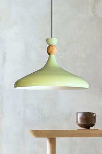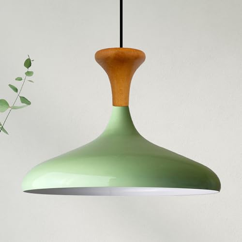 bamyum Champion Lampe à Bois Suspension Moderne en Metal de 35 cm, Lustre de Salon, Chambre, Cuisine, Suspension Luminaire Plafonnier, Éclairage de Plafond, Lampe Suspendue Vert Menthe