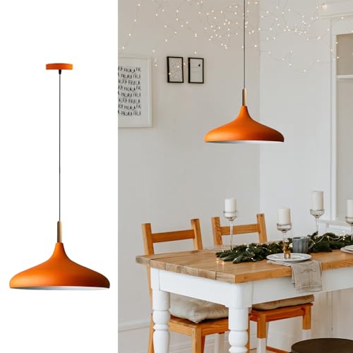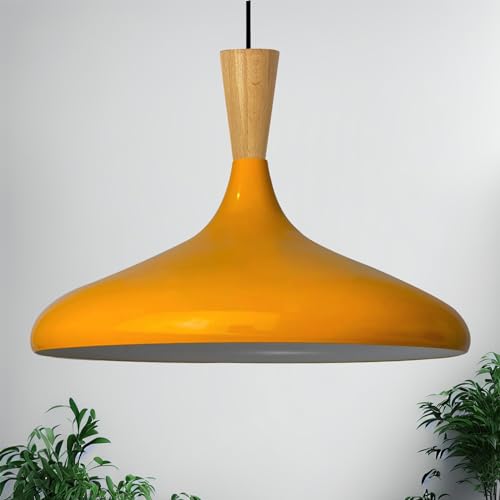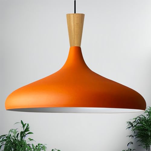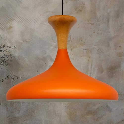 bamyum Champion Lampe à Bois Suspension Moderne en Metal de 35 cm, Lustre de Salon, Chambre, Cuisine, Suspension Luminaire Plafonnier, Éclairage de Plafond, Lampe Suspendue Orange