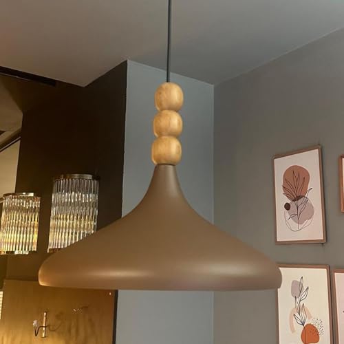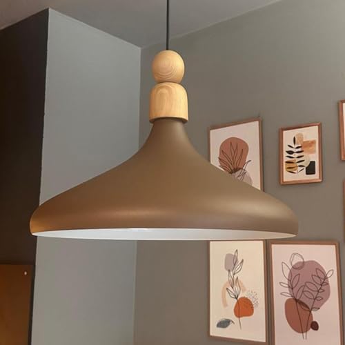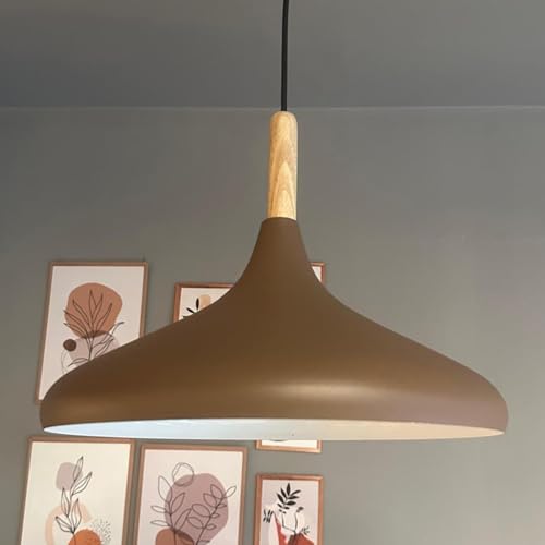 bamyum Champion Lampe à Bois Suspension Moderne en Metal de 35 cm, Lustre de Salon, Chambre, Cuisine, Suspension Luminaire Plafonnier, Éclairage de Plafond, Lampe Suspendue Marron Laiteux