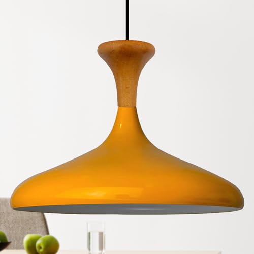 bamyum Champion Lampe à Bois Suspension Moderne en Metal de 35 cm, Lustre de Salon, Chambre, Cuisine, Suspension Luminaire Plafonnier, Éclairage de Plafond, Lampe Suspendue Jaune Foncé
