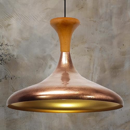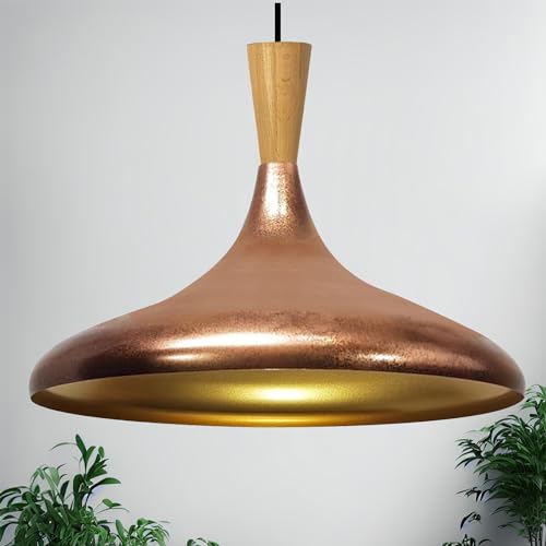bamyum Champion Lampe à Bois Suspension Moderne en Metal de 35 cm, Lustre de Salon, Chambre, Cuisine, Suspension Luminaire Plafonnier, Éclairage de Plafond, Lampe Suspendue Tono Cuivre