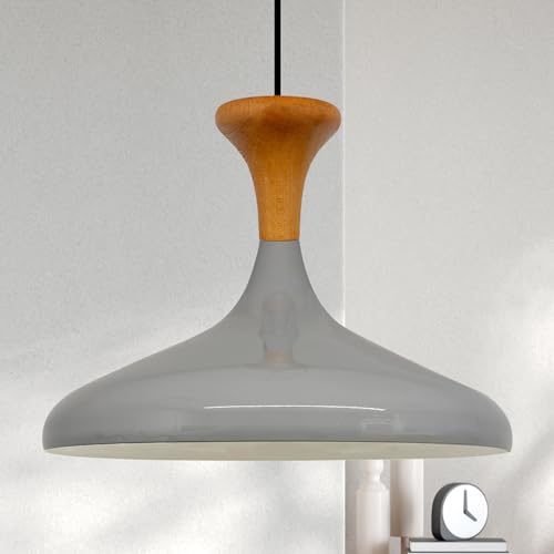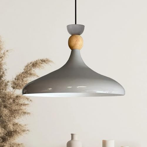 bamyum Champion Lampe à Bois Suspension Moderne en Metal de 35 cm, Lustre de Salon, Chambre, Cuisine, Suspension Luminaire Plafonnier, Éclairage de Plafond, Lampe Suspendue Gris