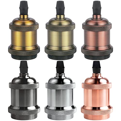 DiCUNO Vintage E27 douille de lampe, Edison retro suspension lampe, Solide céramique adaptateur, 6 Pièces couleur chrome socket