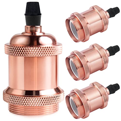 DiCUNO Vintage E27 douille de lampe, Edison retro suspension lampe, Solide céramique adaptateur, 4 Pièces or rose socket