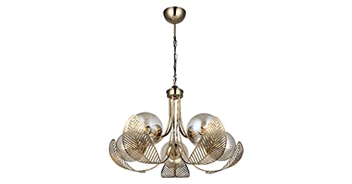 Homemania Boucles d'oreilles Fantaisie - Lampe à Suspension - Lampe de Plafond - Or en Métal, Verre, 64 X 64 X 95cm, 5 X E27, Max 40W