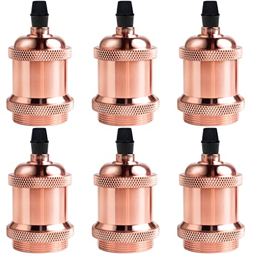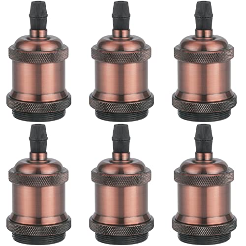 DiCUNO Vintage E27 douille de lampe, Edison retro suspension lampe, Solide céramique adaptateur, 6 Pièces cuivre rouge socket