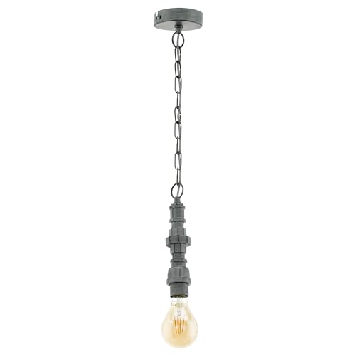 Eglo Suspension Chepstow, lampe suspendue 1 flamme style industriel, vintage, rétro, lampe en acier argent antique, lampe de salle à manger, lampe de salon suspendue avec douille E27