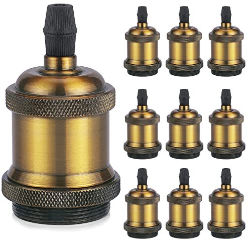 DiCUNO Vintage E27 douille de lampe, Edison retro suspension lampe, Solide céramique adaptateur, 10 Pièces laiton vintage socket