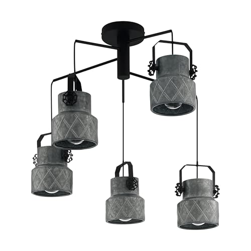 Eglo Suspension Hilcott, lampe suspendue 5 flammes vintage, industrielle, en acier noir, galvanisé, lampe de salle à manger, lampe de salon suspendue avec douille E27, Ø 67,5 cm