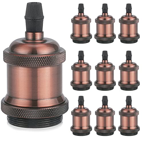 DiCUNO Vintage E27 douille de lampe, Edison retro suspension lampe, Solide céramique adaptateur, 10 Pièces cuivre rouge socket