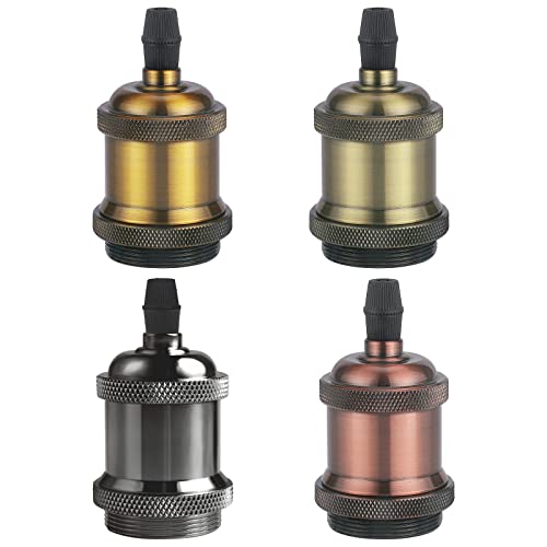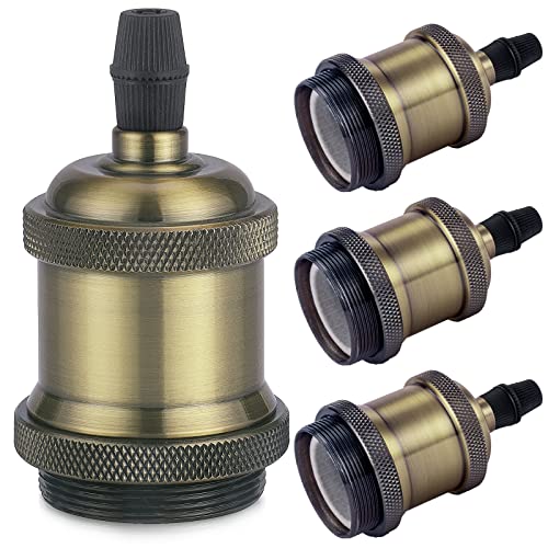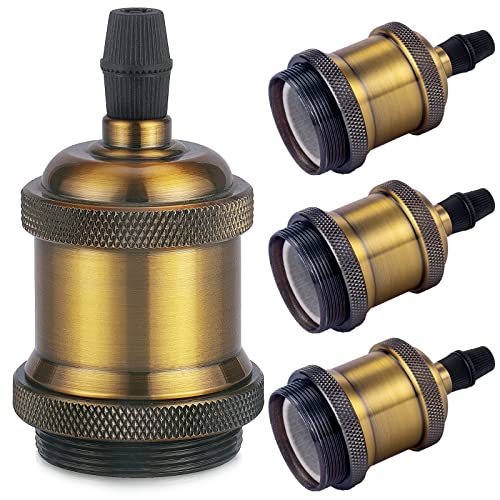DiCUNO Vintage E27 douille de lampe, Edison retro suspension lampe, Solide céramique adaptateur, 4 Pièces laiton vintage socket