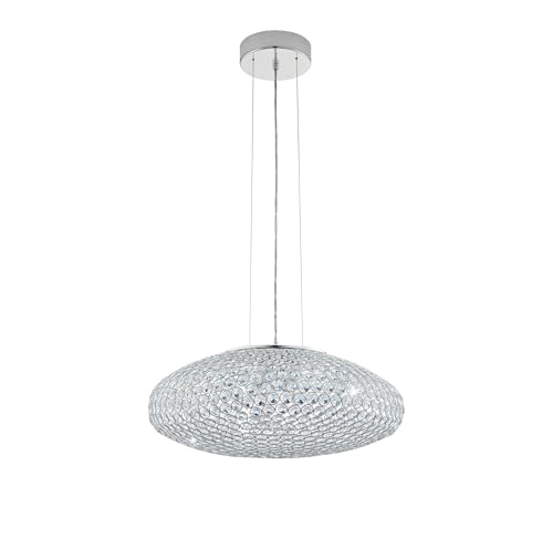 Eglo Suspension Clemente, lampe à 3 flammes, élégante, suspension en acier et cristal chromé, claire, lampe pour table à manger, lampe de salon suspendue avec douille E27
