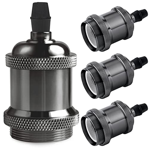 DiCUNO Vintage E27 douille de lampe, Edison retro suspension lampe, Solide céramique adaptateur, 4 Pièces noir perle socket