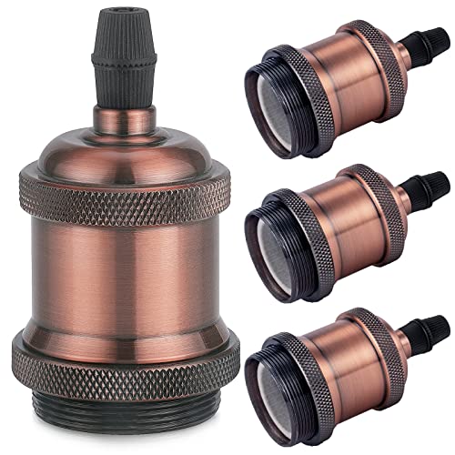 DiCUNO Vintage E27 douille de lampe, Edison retro suspension lampe, Solide céramique adaptateur, 4 Pièces cuivre rouge socket