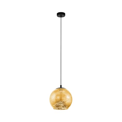 Eglo Suspension luminaire Alabraccin, lampe de plafond suspendue, lustre salon ou salle à manger en métal noir et verre doré, douille E27, Ø 27 cm