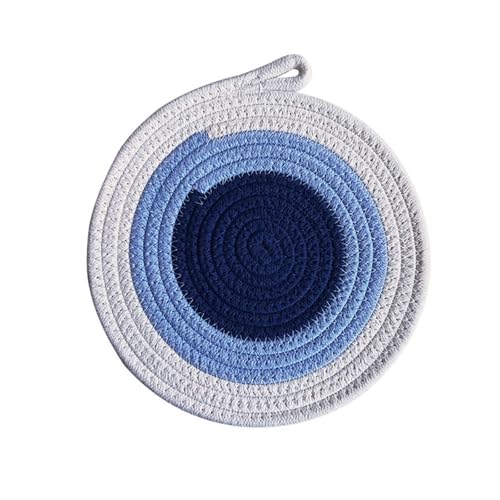 Set de Table Vintage Dinner, sous Assiette Bleue Lot de 4 Tissé avec Trou de Suspension Coton et Lin Dessous de Table 24cm