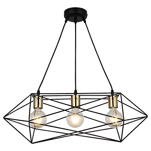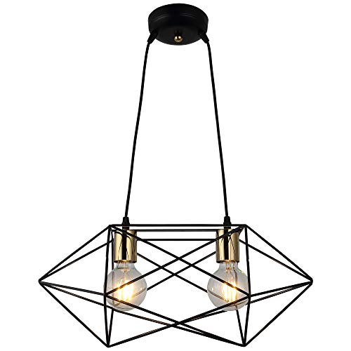 STOEX Lustre suspension luminaire en metal noir design cage forme diamant 20cm E27 60W corde ajustable pour cuisine chambre restaurant