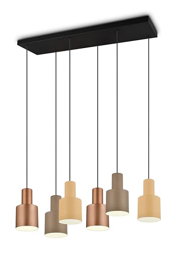 Trio Leuchten Suspension STREAM 364000617, Métal Noir mat, Abat-jour Coffee/Taupe/Beige, excl. 6x GU10