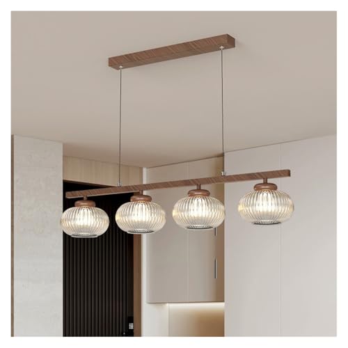 HJCKJSMEOU Lustre, Suspension LED Moderne pour Salon et Salle à Manger, Appliques en Verre, Lustre Long Noir Noyer pour Restaurant, Cuisine, Bar (L 96 cm, télécommande)