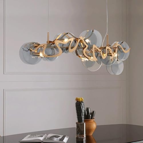 Lustre à Bulles De Lumière Mid Century Verre Globe Lustre Oiseau Créatif Design Lustre Linéaire Suspension Moderne pour Salon Îlot De Cuisine Salle à Manger, Gold, Smoke Gray Glass