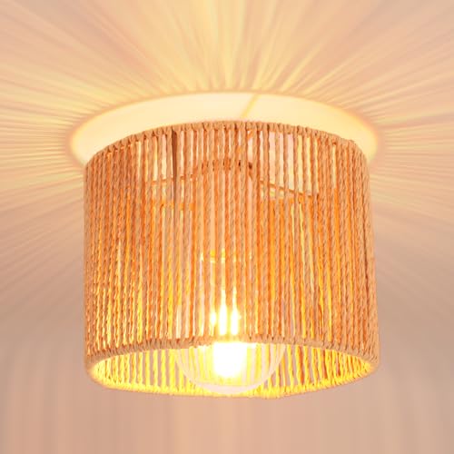 Housoutil Plafonnier en rotin E27 Wabi-Sabi Style abat-jour en osier Lampe de plafond rétro Américain Suspension en rotin pour couloir, chambre, salon, bureau, hôtel, salle de séjour
