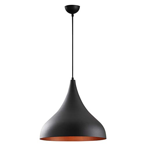 Eglo Suspension luminaire Covaleda 1, lustre suspendu industriel, vintage et rétro, lampe en acier noir et doré pour salon et salle à manger, douille E27, Ø 45,5 cm