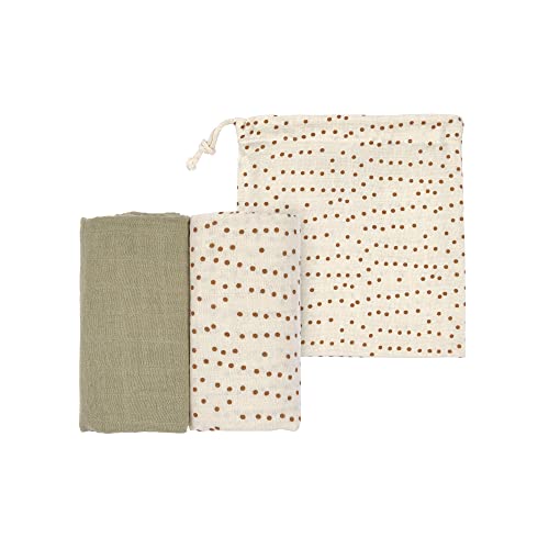 LÄSSIG Bébé Couverture de puériculture Drap de puériculture Lot de 3 en coton 60 x 60 cm/Swaddle & Burp Blanket M olive/milky/rust