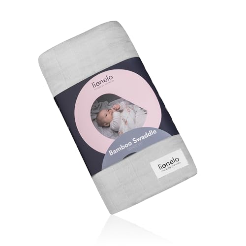 lionelo Bamboo Swaddle Lange pour bébé, Grande Couverture bébé en Coton de Bambou 100% Naturel, Dimensions 120 x 120 cm, agréable au Toucher, Tissu Doux Gris