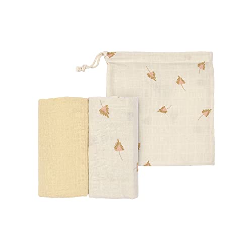 LÄSSIG Bébé Couverture de puériculture Drap de puériculture Lot de 3 en Coton 60 x 60 cm/Swaddle & Burp Blanket M Leave Olive/Milky