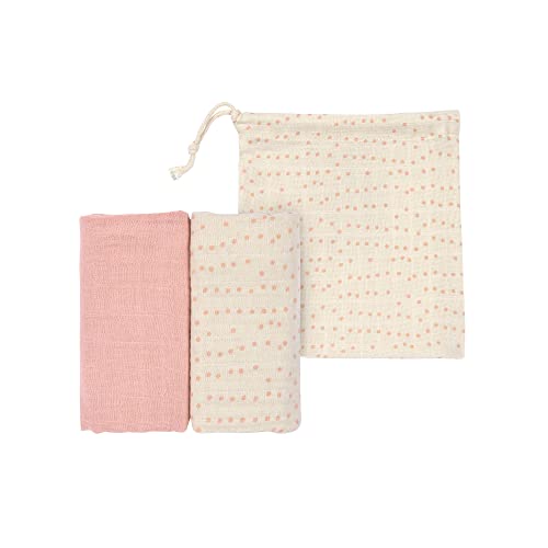 LÄSSIG Bébé Couverture de puériculture Drap de puériculture Lot de 3 en coton 85 x 85 cm/Swaddle & Burp Blanket L pink/milky/rust