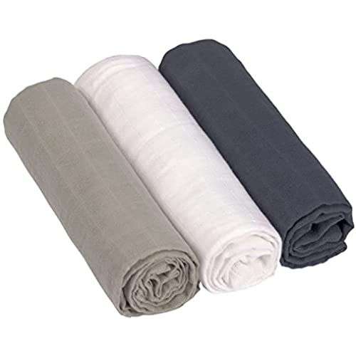 LÄSSIG Bébé Couverture de puériculture Drap de puériculture Lot de 3 en coton 85 x 85 cm/Swaddle & Burp Blanket L Strokes silver grey