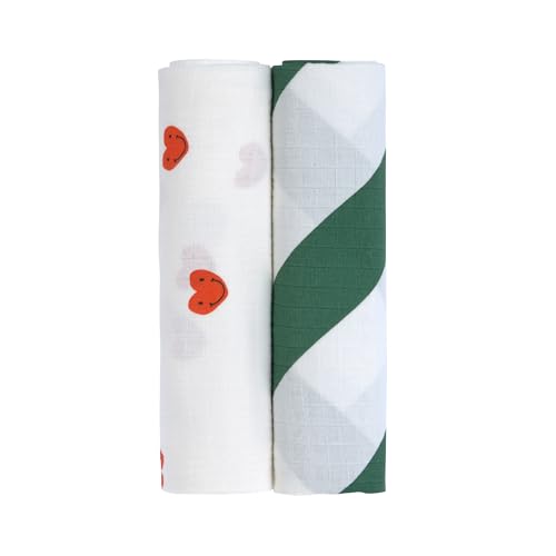 LÄSSIG Bébé Couverture de puériculture Drap de puériculture Lot de 2 en coton 120 x 120 cm/Heavenly soft Swaddle XL Happy Rascals Heart