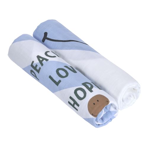 LÄSSIG Linge de puériculture pour bébé Lot de 2 mousselines Couverture de puériculture douillettement doux et respirant (2 pcs. 120 x 120 cm)/ Heavenly Soft Swaddle XL Garden Explorer boys