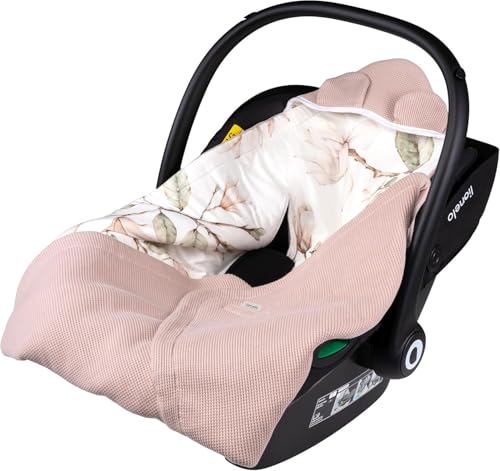 LIONELO Travel Swaddle Blanket Couverture Chaude pour Siège Auto, Porte-bébé, Poussette Toute l'Année Couverture Douce pour Bébé 90x90 cm Fermeture Velcro, 100% Coton (Pink)