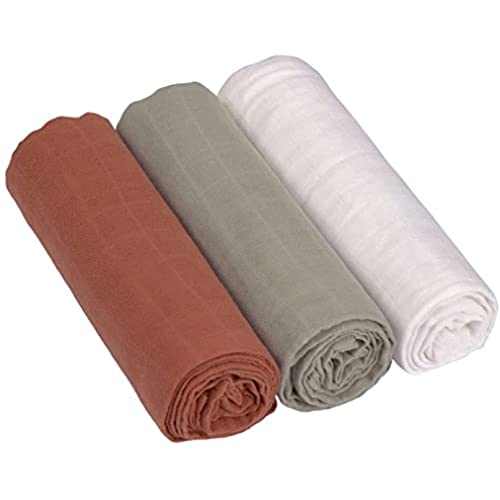 LÄSSIG Bébé Couverture de puériculture Drap de puériculture Lot de 3 en coton 85 x 85 cm/Swaddle & Burp Blanket L rust/olive/milky