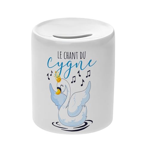 Tirelire Céramique Blanche - Le Chant du Cygne Mignon Expression Animaux - Boîte à Monnaie avec Bouchon Décoration Chambre Imprimé en France
