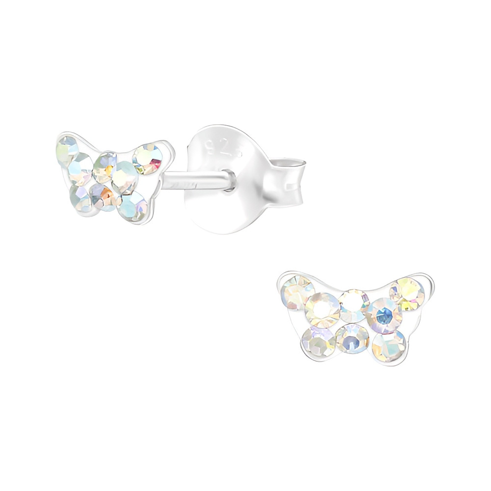 Boucles d'Oreilles - Enfant - Puces - Papillon - Swarovski Elements - Argent 925