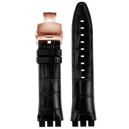 AXTGBHL Bracelet de montre en cuir, fermoir en acier, 21mm, adapté for Swatch IRONY YOS440 449 448 401G 420, Bracelet de montre for femmes et hommes(Black-black)