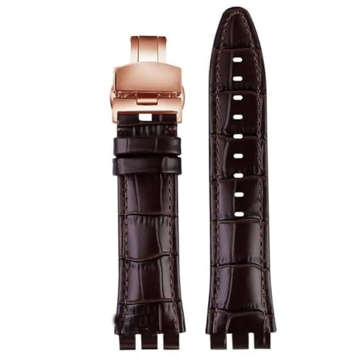 AXTGBHL Bracelet de montre en cuir, fermoir en acier, 21mm, adapté for Swatch IRONY YOS440 449 448 401G 420, Bracelet de montre for femmes et hommes(Brown-rosegold)