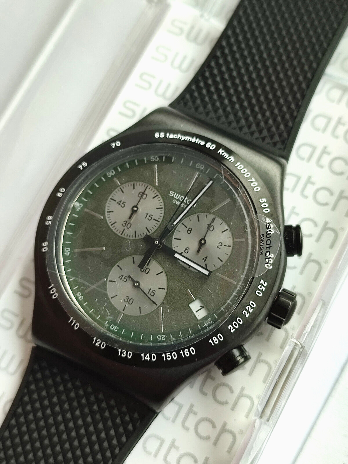 Swatch Irony Nouvelle Chrono Yvm405 Irony Noir Brillant Neuf