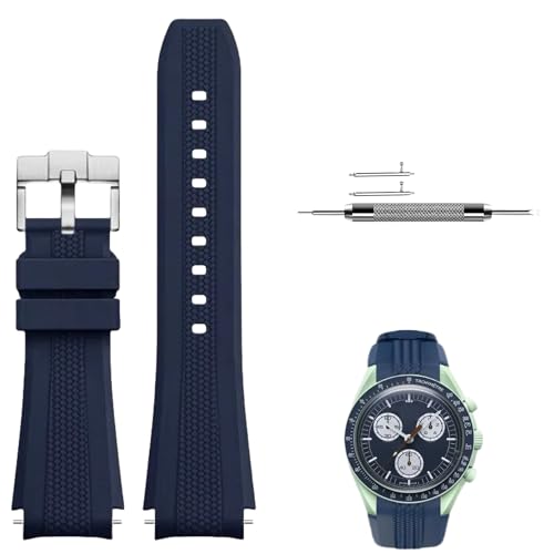 JVEIWAD Bracelet de montre incurvé en caoutchouc, compatible avec Omega X, compatible Swatch Moonwatch, for Seamaster 300 Sport, étanche, TPU, 20 mm(Blue)