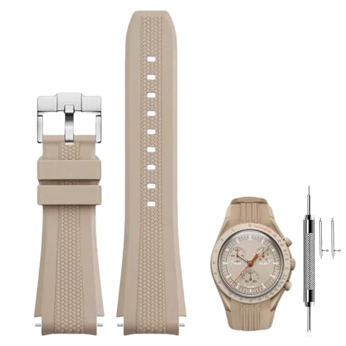 JVEIWAD Bracelet de montre incurvé en caoutchouc, compatible avec Omega X, compatible Swatch Moonwatch, for Seamaster 300 Sport, étanche, TPU, 20 mm(Brown)